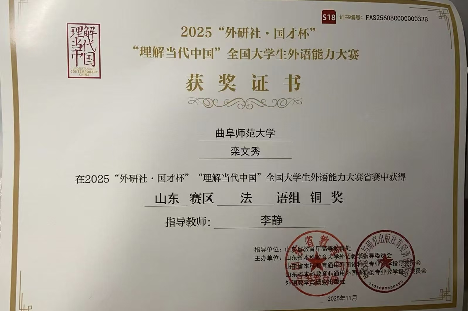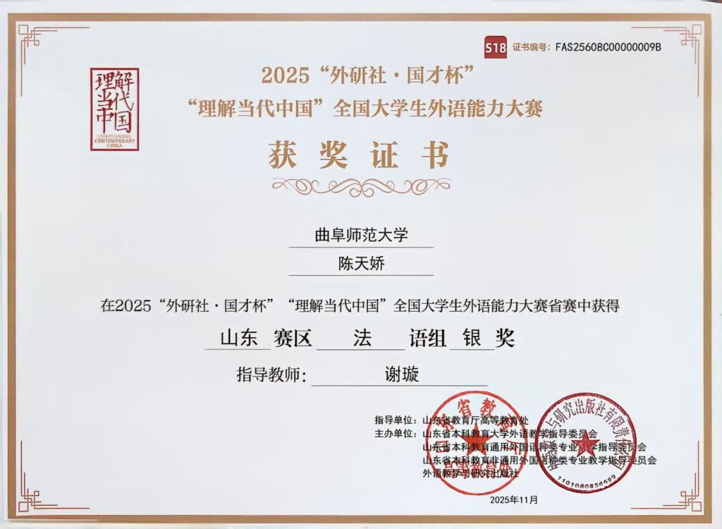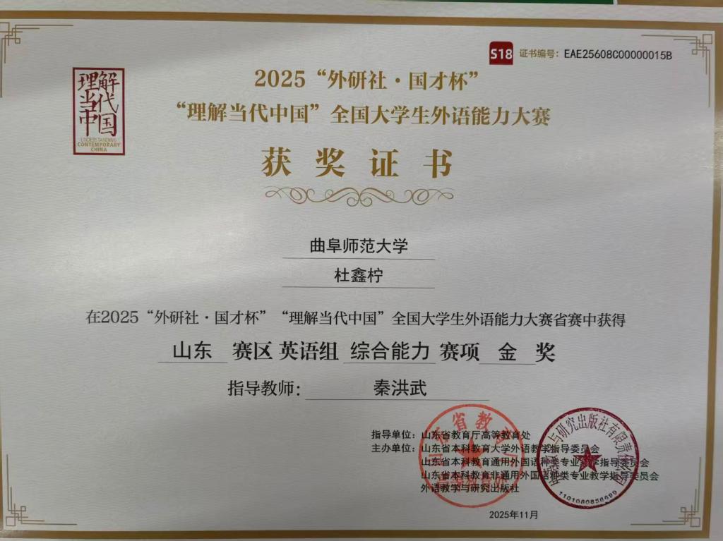 近日,2025“外研社·国才杯”“理解当代中国”全国大学生外语能力大赛山东省省赛顺利举行,来自全省各大高校的学生参加本次比赛,经过激烈的角逐,av中文